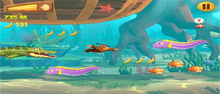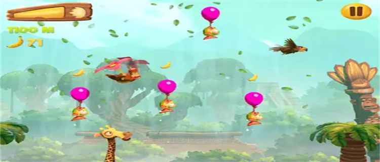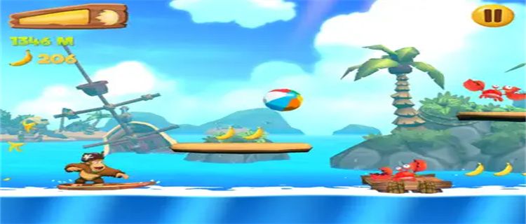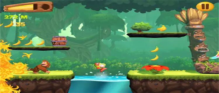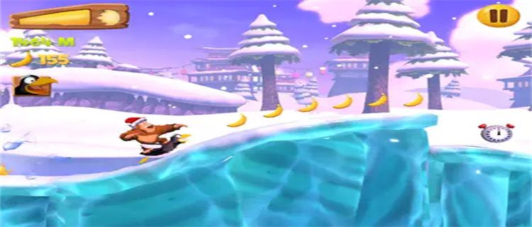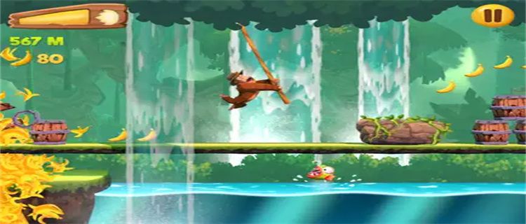 1. Control the orangutan to run in various scenes, collect bananas, avoid obstacles, and challenge the longest running distance;