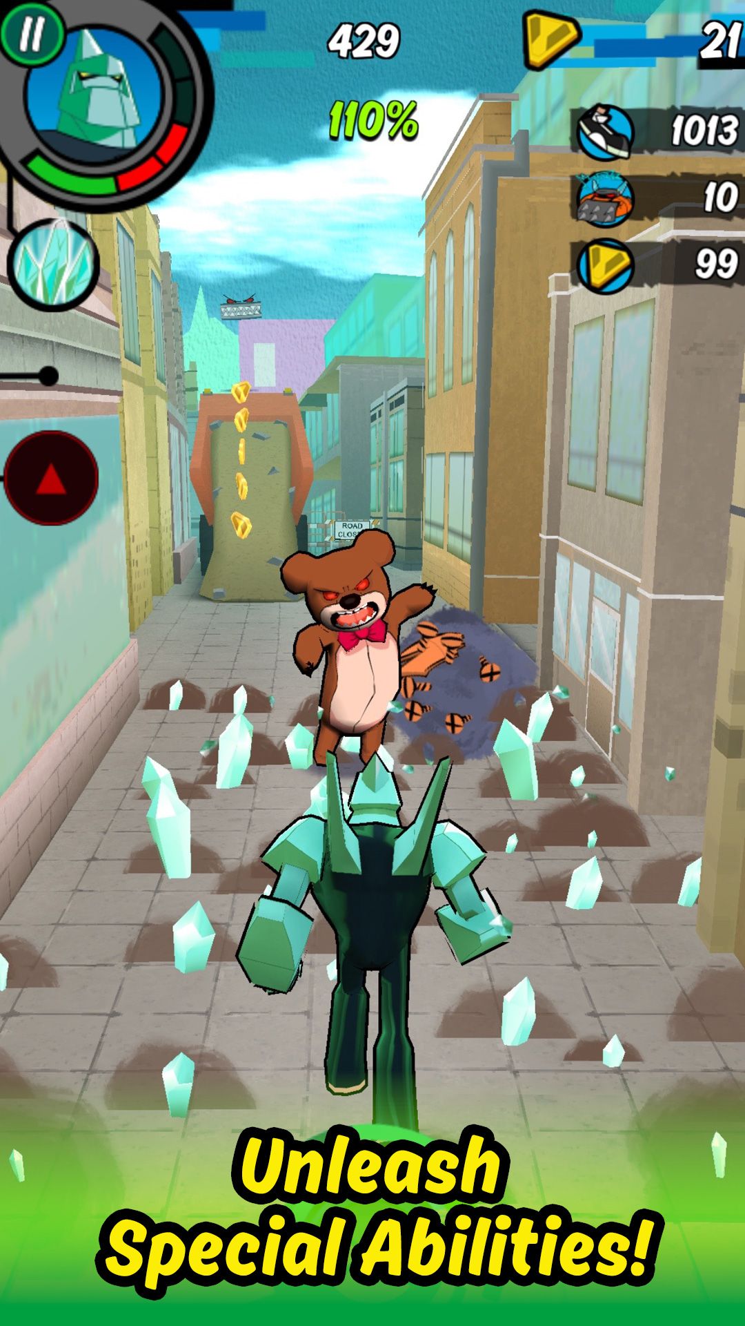 Use Ben 10's alien powers to run past enemies, obstacles and jumping supervillains in Ben 10 and smash your way to: top speed!