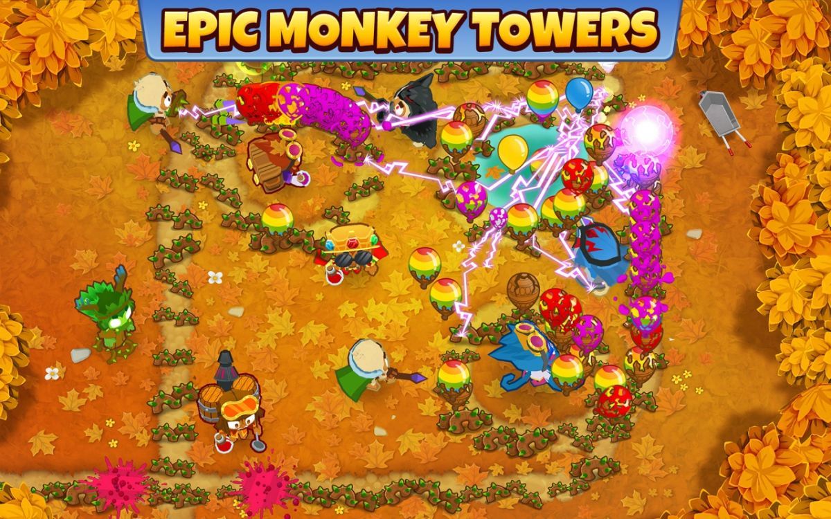 The game has over 100 optimized upgrades to enhance each monkey tower or group of monkeys: 20 powerful monkey towers with two brand new monkeys - Druid and Alchemist. And all monkey towers have 3 different routes to choose from for upgrades. Each monkey hero has 2 active skills for breaking balloons, and all of these skills need to be upgraded and coordinated by yourself.