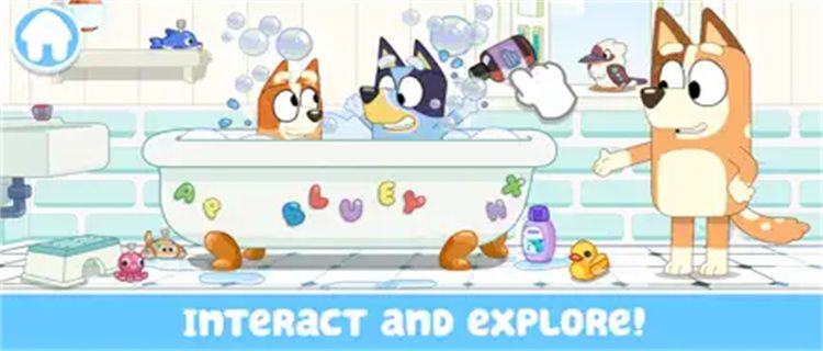 Bluey's house is your virtual play set, the fun is at your fingertips! Click, drag, and interact with everything. Cook up a favorite recipe in the kitchen, help build a pizza oven in the backyard, or have a tea party – create anything! Come play a game of no-ball, bounce on the trampoline, splash in the bubble-filled tub, or swing on the backyard swing - the possibilities are endless!