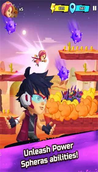4. Help the character to run and challenge various obstacles to collect energy balls for use.