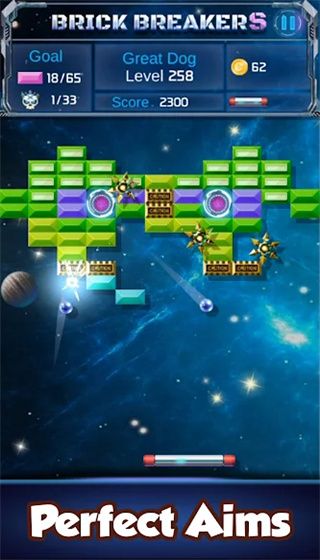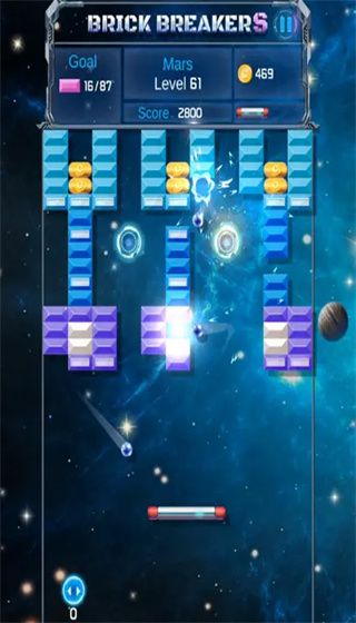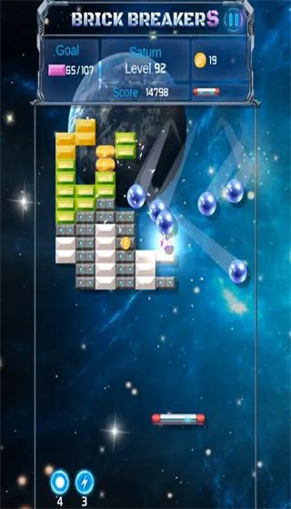 3. Players will go to outer space, keep moving the long bar to bounce the ball, and keep hitting and eliminating all the bricks in the level.