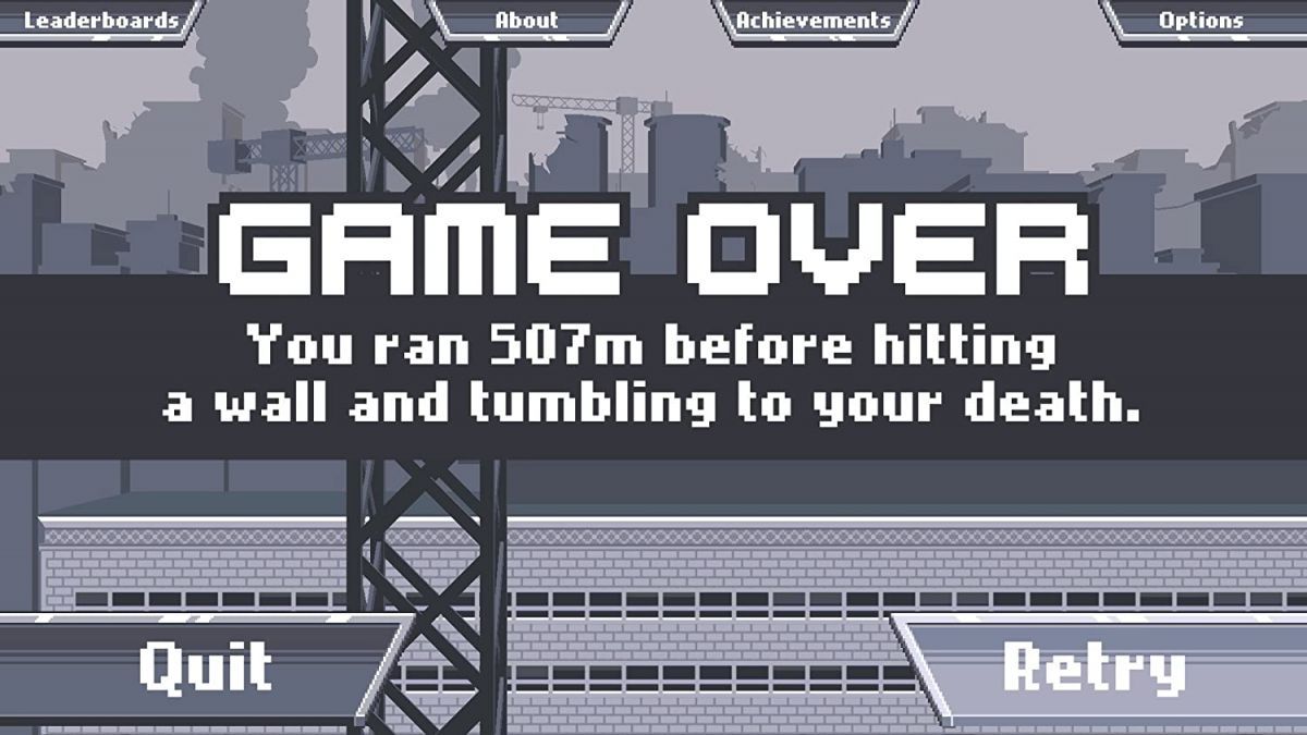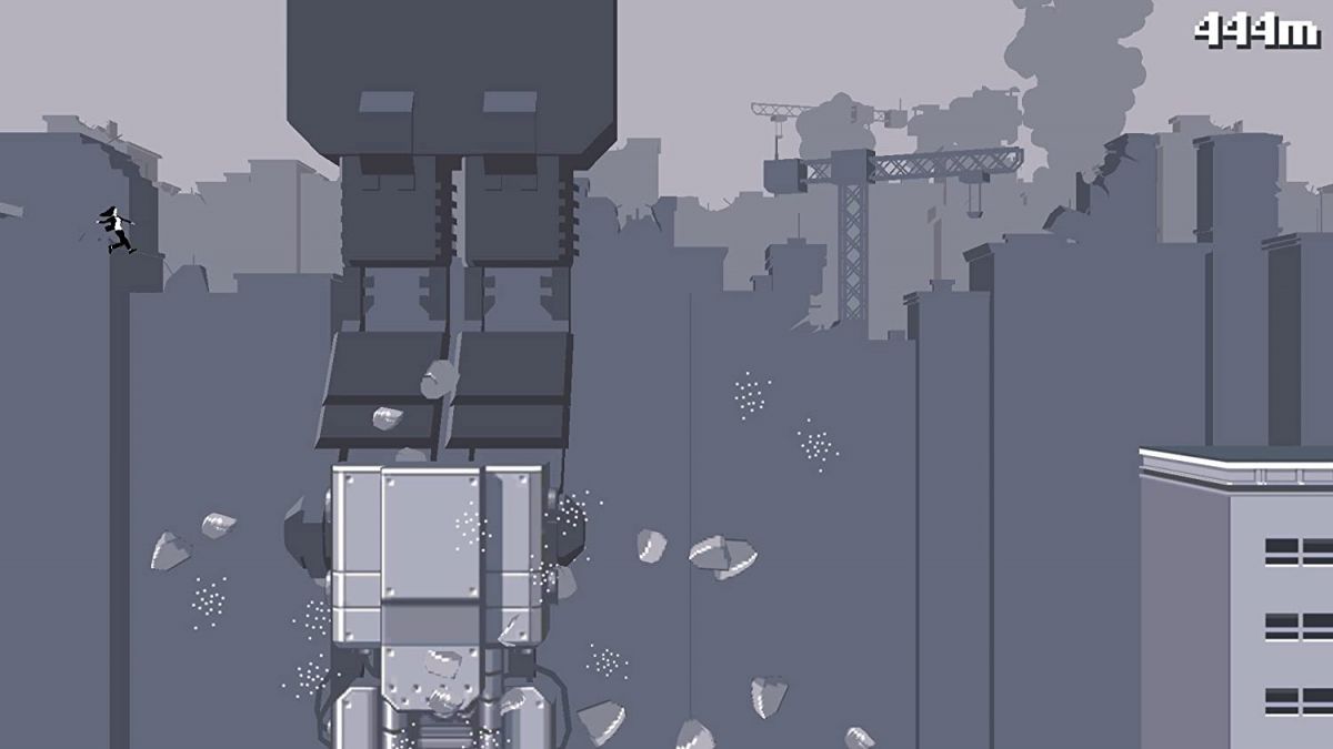 A black and white painting style of agile parkour game, the game between the player control a character wearing a suit in a high building running jump, pay attention to the agile dodge boxes and other obstacles, in the uneven roof, cranes and other platforms fast forward, with a wealth of scenes can be challenged. The story is about the city was suddenly attacked by aliens, the ground has been occupied, quickly from the building rooftop escape it! Simple operation, smooth speed, shocking music, urban escape is a must-play! Tap the screen is depression, real press is big jump, automatic acceleration, you can use the box in the road to slow down, but pay attention to dodge the sudden fall of the bomb!