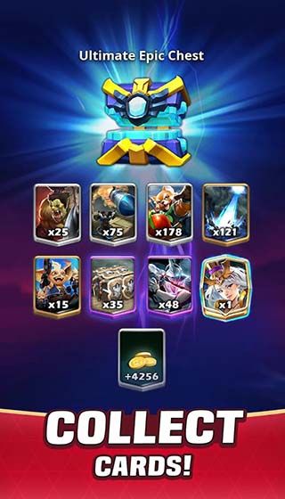 Complete daily quests and open various chests to collect cards, gold and rubies.