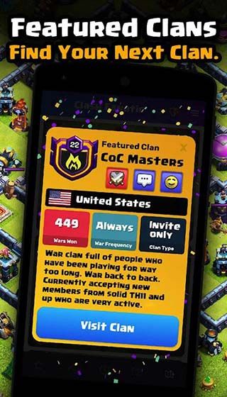 Featured Clans: Is your current clan not cutting it anymore? Find successful clans in the ‘Featured Clans’ section.