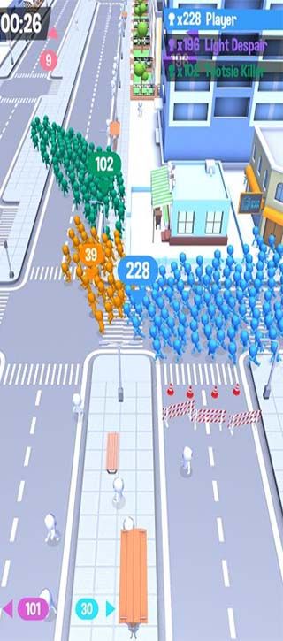 Crowded City is an interesting casual game, the game has a simple screen style, very magical game settings, seemingly fresh theme city atmosphere, with a certain degree of challenge, multiplayer online implementation of the battle, the strength of real players pk, players need to combine the scattered crowd together, expand their own team, with players from different places to start a battle, players need to gather in the shortest and fastest time The players need to gather the crowd in the shortest and fastest time to attack and devour other players to get the final victory.