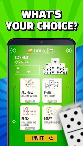 3 versions of Dominoes: All Fives, Block or Classic Draw Domino