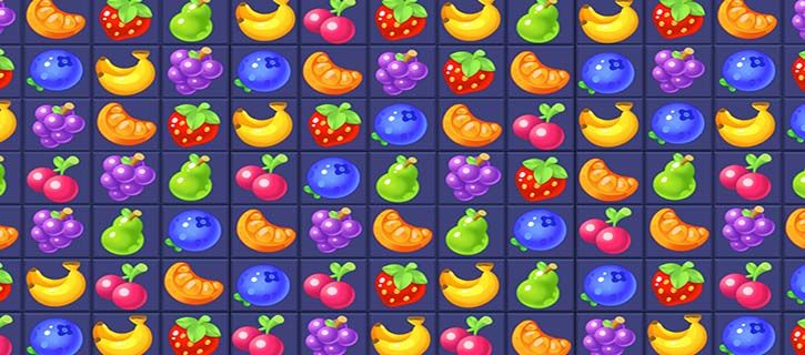 - 4 identical fruits will create a new fruit that can explode horizontally or vertically