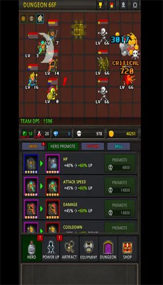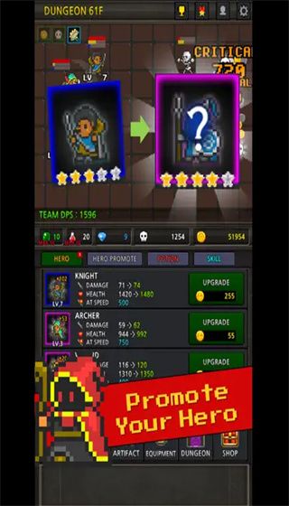 2. By forming these heroes to carry out various adventure battles, in the battle, the player can kill monsters to get gold coins to upgrade the hero's level;
