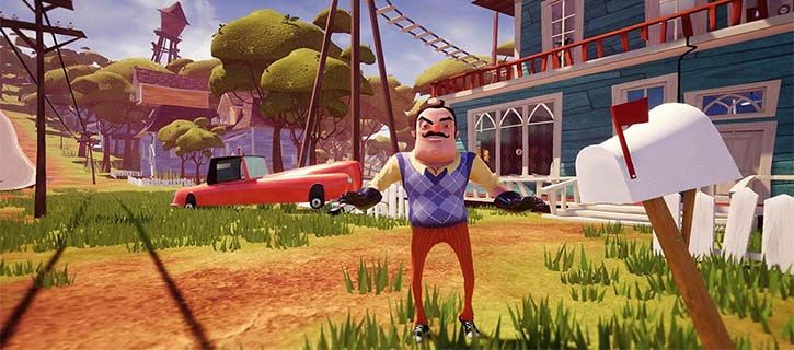 Hello Neighbor is an American comic style adventure escape game, the goal of the game is to enter the neighbor's home, through various means to avoid the neighbor's reconnaissance, and finally enter that mysterious library, even if you get the victory. Although it seems simple, but the game's neighbor is quite sensitive, he can not only discover your trail through hearing and sight, but also according to the player's action behavior in the game self-learning, intelligence continues to grow! The game you can also use a variety of props in the neighbor's home to create trouble for neighbors in order to escape, his home kettle, refrigerator, chairs, slingshots, etc., as long as you want to get, all of them are the sharpest tools you can trick neighbors, you need to sneak into the neighbor's home, collect its information to see what he has hidden secrets, be sure to pay attention, do not be caught, otherwise there will be life threatening!