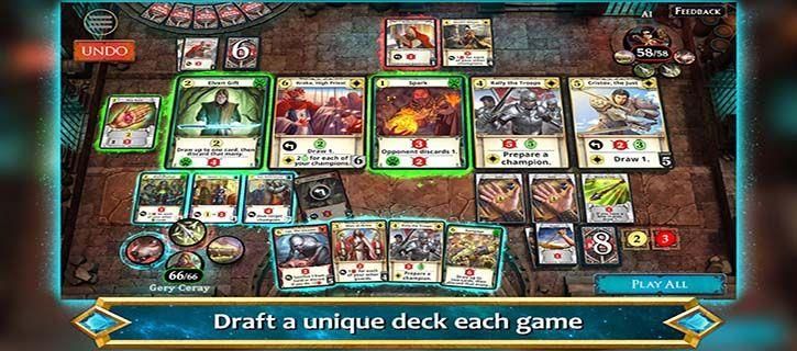 Hero Realms is a fantasy-themed, scalable deck-building game. Players can play solo or in groups with friends; customize starting decks for multiple professions; and play scripted battles with cooperative models to gain experience points to strengthen their starting decks.