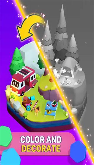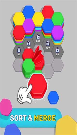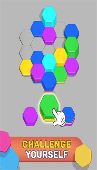 A free puzzle mobile game based on sorting hexagonal tiles. In the game, players will face colorful hexagonal tiles placed on the board, and merge tiles of the same color together through sorting, and finally place all tiles on the board together. The picture adopts a 3D cartoon style. On the one hand, through 3D visual effects in the level, hexagonal tiles with the same thickness are presented in front of the player, giving you a more intuitive visual effect. On the other hand, in the coloring part of the buildings, the low-polygonal style of painting can easily capture players of almost all ages.