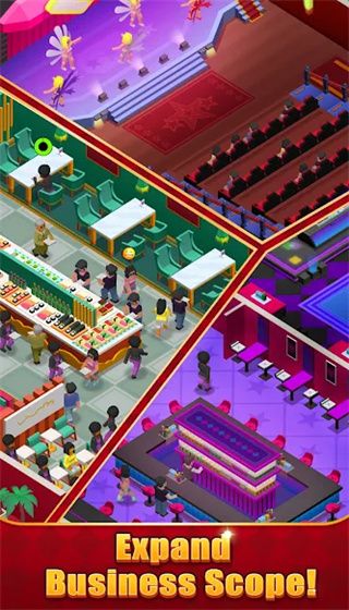 A business simulation game where players play the role of hotel managers and create the most luxurious resort in Las Vegas. Attract more customers and earn more revenue by upgrading facilities, introducing celebrities and various activities. You will transform into a resort hotel owner, open various hotels in places where consumers like to go, purchase land on the seaside, decorate and improve all service equipment in the resort and on the beach, and attract more people to visit. The gameplay is full of fun, integrating business and leisure games, and there are many unique mini-games waiting for you to discover.