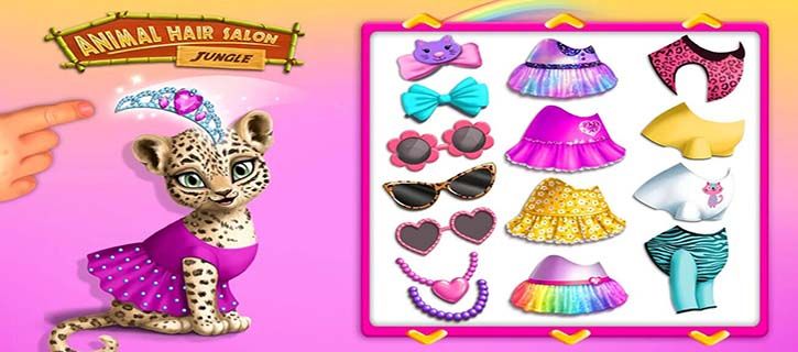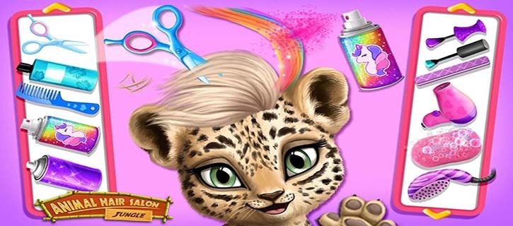 Cut, color, shampoo, style and dress up super cute tropical animals, sloths, leopards, toucans and giraffes!