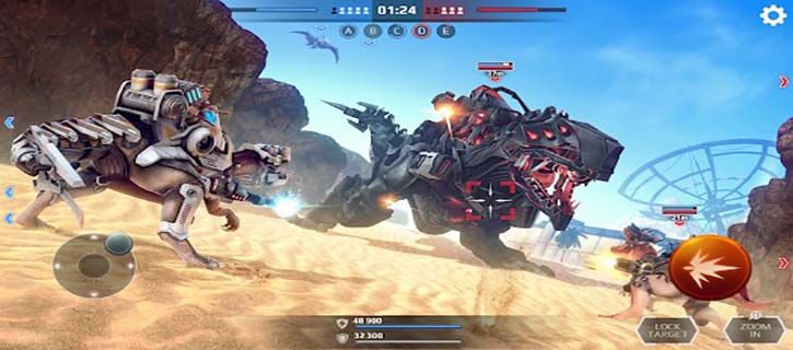 A futuristic shooting war game that combines primitiveness and mechanics. Players can transform original dinosaurs in the game, and they will be combined with mechanical technology. Become a powerful war machine, control war weapons and fight passionately with the enemy. They are equipped with metal armor to unite those untamed beasts to defeat the common enemy.