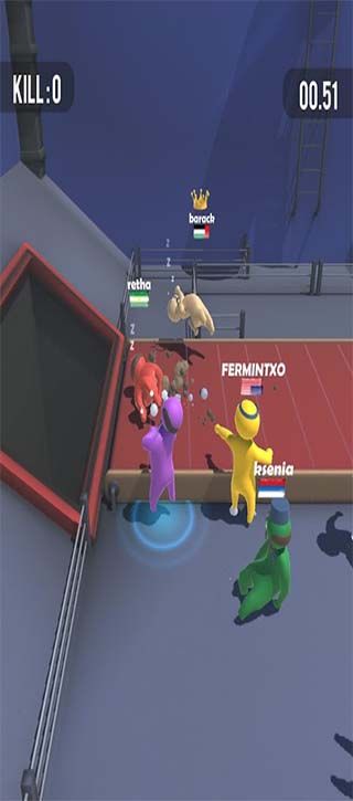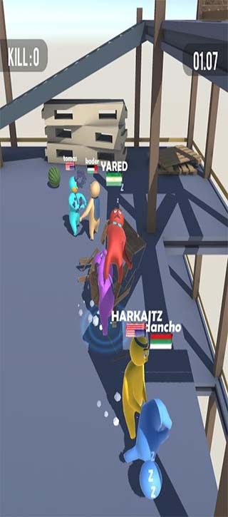 3, light background sound effects, throw everyone out to get the victory. The color on the villain of different teams is different, you can enjoy the challenge to go on, feel pk new challenge.