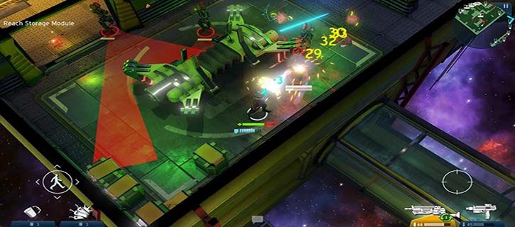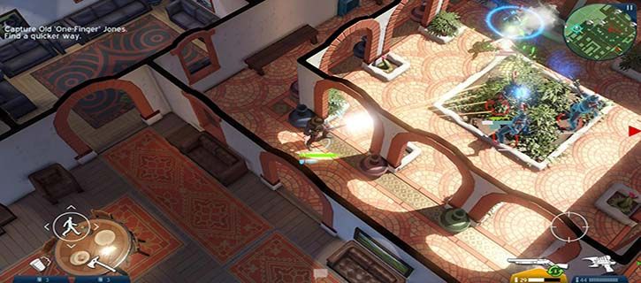 Players play the role of cosmic detectives, tracking criminals around the universe. The setting is the future, however, the style of painting and weapons is very similar to the traditional American West. Including the characters, they all wear cowboy hats. The game has a standard 45-degree view, with buttons on the left to control character movement and on the right to fire weapons. Different weapons can be used by clicking on the weapon icon at the bottom of the screen.