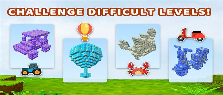 The gameplay adopts a puzzle-type disassembly and elimination gameplay. You need to face the graphics made of building blocks in the level, gradually dismantle them, and clean up all the building blocks. The building blocks in each level form a new theme, including animal-themed elk shapes, enviable hot-air balloon shapes, farm machinery tractors, and sailboats that can sail out to sea. Various shapes, beautiful colors, and suitable backgrounds. Including the story modes created in different scenarios, it can indeed be seen that a lot of effort has been put into polishing the outside of the gameplay.