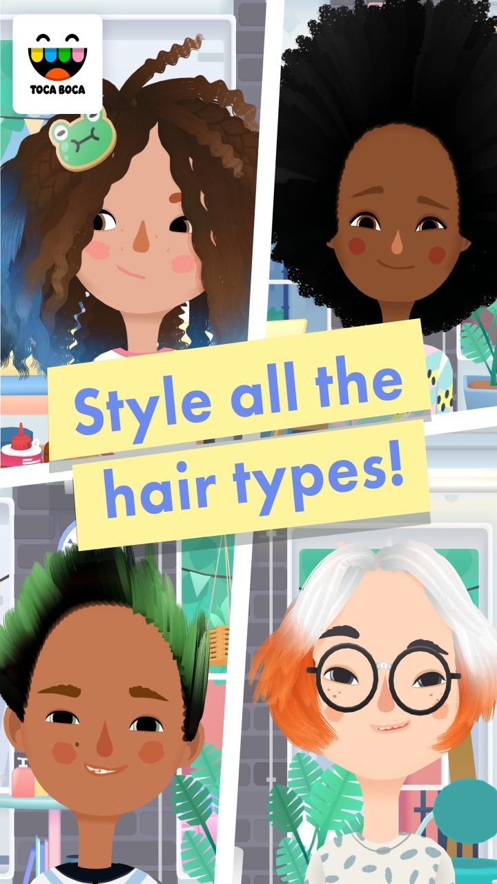 The hair in Toca Hair Salon 3 looks and moves just like real hair! Not only can you design silky smooth straight hair, extremely flexible curls, and big, voluminous waves. And for the first time in the Toca Hair Salon line, we're introducing a new wave of African hair! This super curly hair type allows you to create voluminous curls, as well as natural hair styles that are extremely individual without the need for a perm or dye.