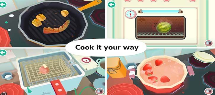 Creativity abounds: Who says dishes have to be beautiful and delicious? At Toca Kitchen 2, you can be as creative as you want to be! Make a potato tart, make a salad, or whip up a burger. Create your own secret recipe and serve your guests something special.