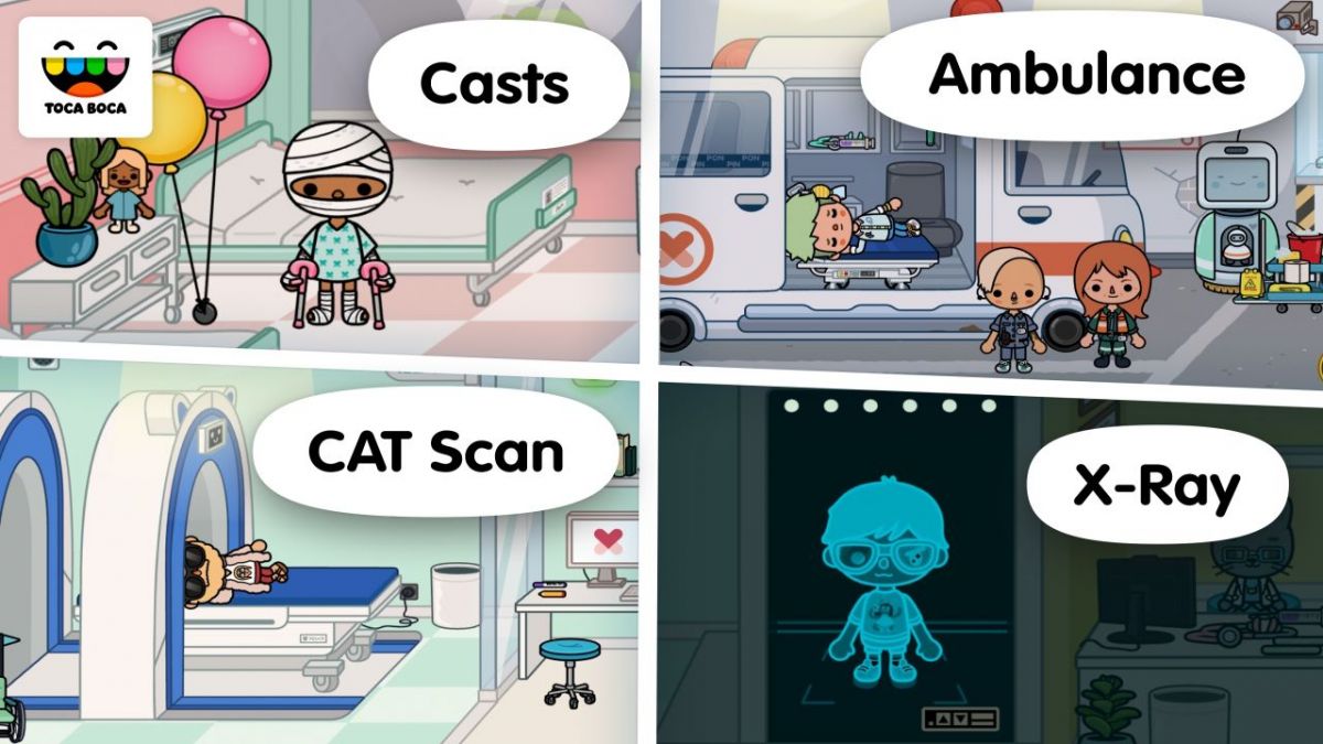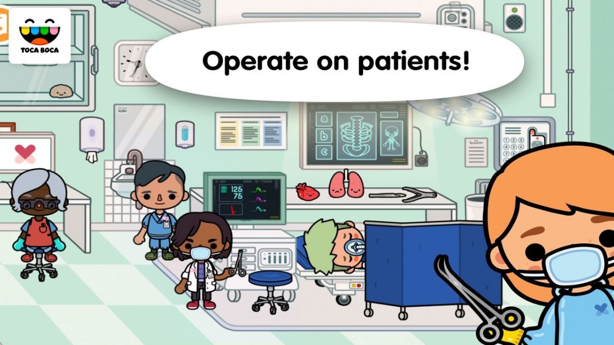 Toca Life: Hospital lets you see what happens in a hospital with tests, X-rays, and other things that tell the story of a fake or real life.