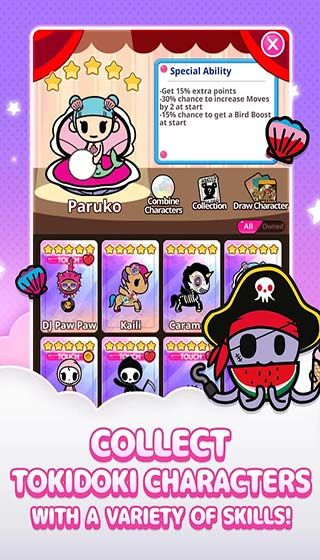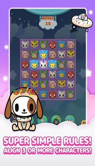 Tokidoki friends : Match 3 Puzzle is a casual puzzle game of elimination type with beautiful graphics, in tokidoki friends players need to eliminate the same animals in different levels to get higher scores.
