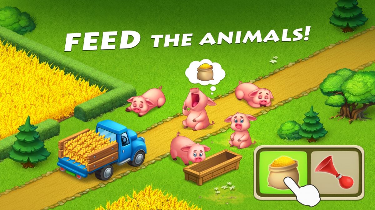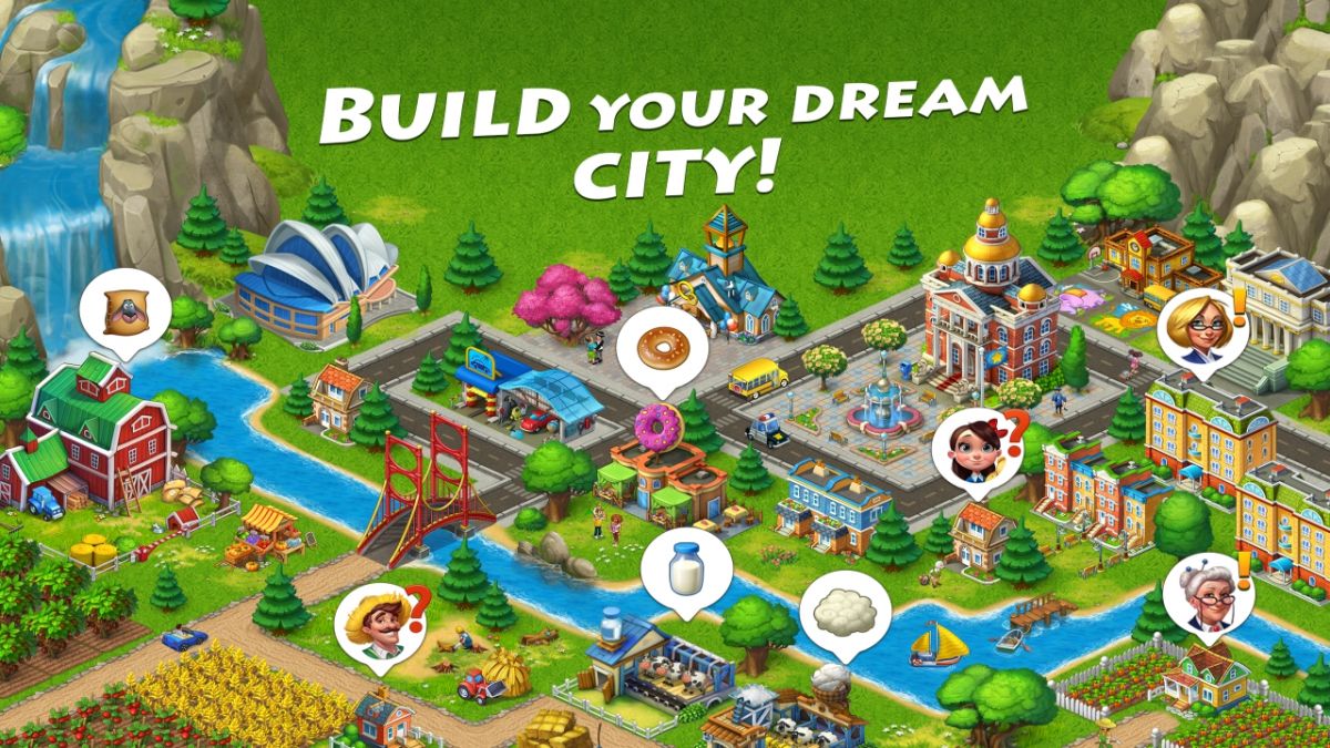 They grow crops like wheat and corn, harvest resources, and process goods in factories to fulfill orders via trains, planes, or helicopters. This earns coins and experience for expanding the town, adding homes, decorations, and landmarks such as the Statue of Liberty.