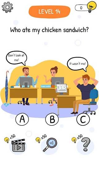1, in this puzzle game your brain will face a variety of strange and bizarre puzzles and riddles to test, some will make your brain turn around. You have to break the routine to find a brilliant solution.