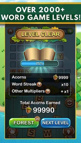 Word Forestt has easy word puzzle games! Word Forest starts out as a simple word game, and as you level up, it gets harder and harder!