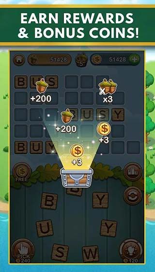 - Daily bonus coins and word puzzles
