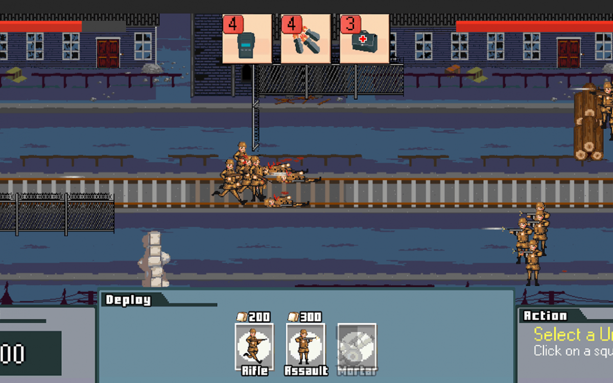 World War 1944 is a pixelated horizontal strategy game in which players can travel back in time to 1944 and take on the role of an Allied commander, commanding your soldiers against the German invasion forces!